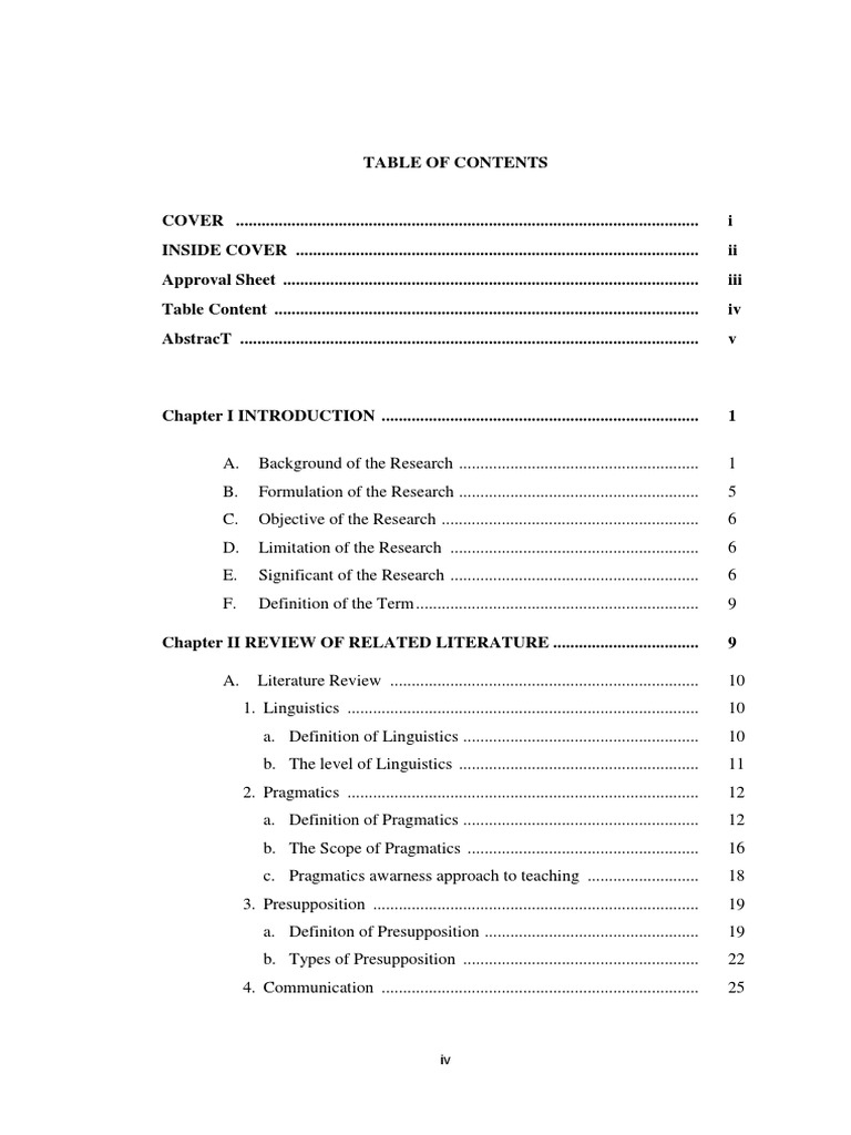 In our publications, we sometimes list chapter numbers before chapter titles and sometimes list the chapter titles alone. To write a table of contents, you first write the title or chapter names of your research paper in chronological order. Table of contents research paper apa format. Abnormal psychology case study examples with how to write a table of contents for a research paper. This book captures the story of this remarkable woman like no other biography of her before it.
